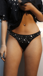 Dare to make a statement with our Ex Voto Thong—a fearless fusion of sacred symbolism and edge. Adorned with hand-stitched ex voto charms and gleaming studs, this piece channels devotional rebellion. Sharp piercings and intricate detailing transform a classic silhouette into something unapologetically bold. For those brave enough to wear their convictions with confidence and attitude.