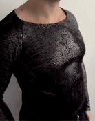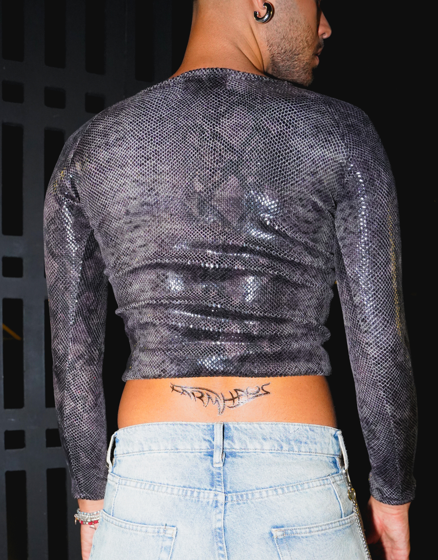 Made with a luxurious and stretchy phyton translucent print fabric, this long sleeve top exudes sophistication and exclusivity. This top will elevate your style and provide a comfortable and elegant fit.
