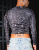 Realizzato con un tessuto lussuoso e elasticizzato con stampa traslucida effetto pitone, questo top a maniche lunghe emana eleganza ed esclusività. Perfetto per elevare il tuo stile, offre una vestibilità comoda e raffinata.